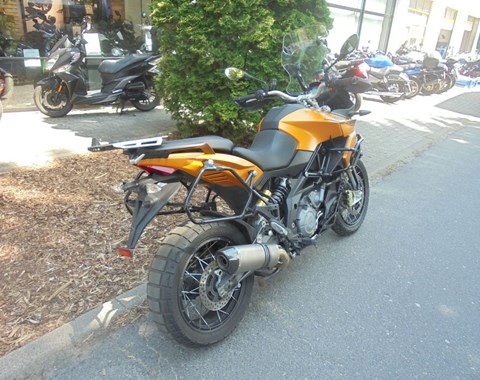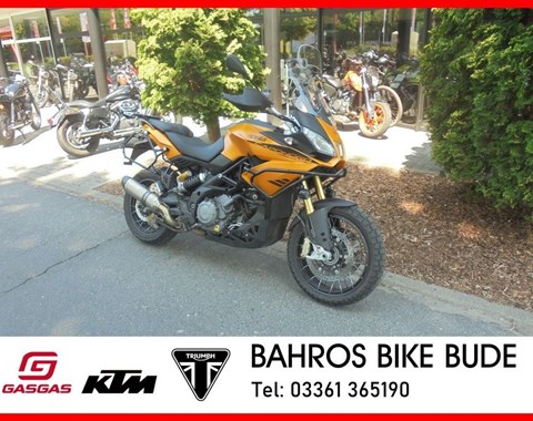 Die Aprilia Caponord 1200 Rally tritt unübersehbar als Topmodell der Capo-Reihe auf den Plan: Edles Kofferset, Sturzbügel, Motorschutz, LED-Zusatzscheinwerfer und ein extravaganter Speichenfelgen-Satz schmeicheln dem Auge ungemein. In Sachen Performance ist die Rally mit Traktionskontrolle, ABS und Temopomat nicht weit weg von ihrer „normalen“ Travel Pack-Schwester. Und auch der Motor ist und bleibt mit seinen 125 PS ein kräftiger Geselle, der vor allem durch seinen kernigen V2-Sound und den guten Durchzug betört. Das komfortable Fahrwerk muss man mögen - während die Fans der brettharten Liga die Nase rümpfen werden, erfreuen sich alle anderen am genialen aktiven Fahrwerk, das selbst die gröbsten Schläge ausbügelt. Offroad-Einsätzen steht eigentlich nur die Straßenbereifung im Weg, das vordere 19 Zoll-Rad würde mit anderer Bereifung gewiss auch den einen oder anderen Geländeausflug gerne mitmachen.- Kräftiger V2-Motor mit herrlichem Sound