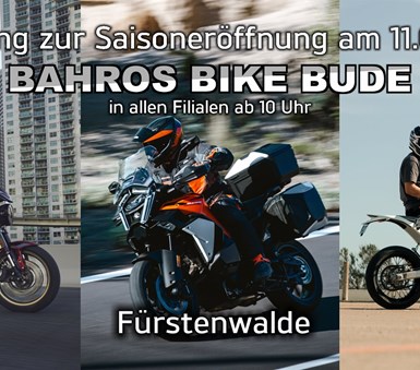 Samstag, den 11.04.2026, laden wir Sie ab 10:00 Uhr zum traditionellen Saisonstart in die Filialen von Bahros Bike Bude ein. Die Gelegenheit die neuen Motorradmodelle 2026 Probe zu fahren.